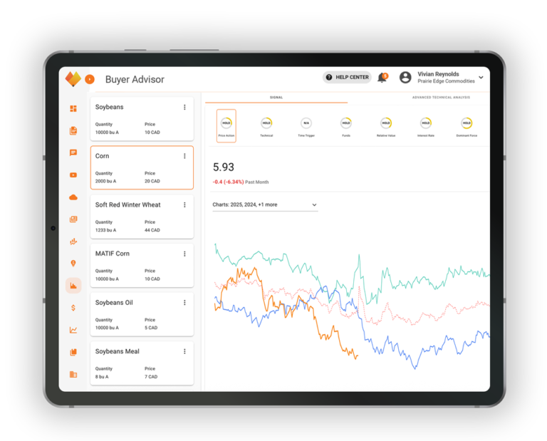 GrainFox Buyer Advisor (beta) equips your procurement team with AI-driven buy/hold recommendations built on real-time market signals, macroeconomic drivers, and predictive modeling. Its explainable AI layer helps your team understand why a signal is generated — creating a transparent, fully integrated decision-support system