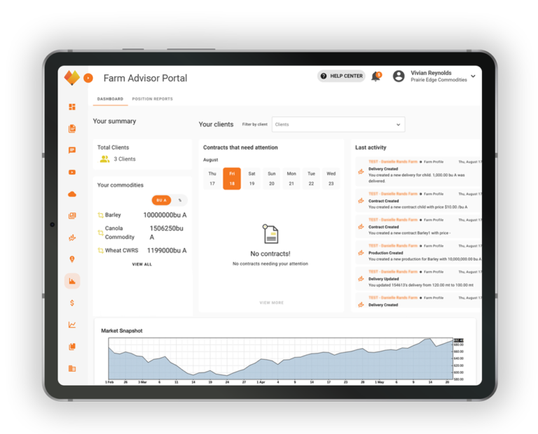 GrainFox’s Advisor Portal provides advisors, lenders, and insurance brokers with a secure, reliable way to collaborate directly with producer clients. Clients choose exactly what data they wish to share, while you gain timely, practical insights to guide planning conversations, manage risk, and strengthen client engagement.