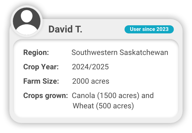 David is a grain producer in southwestern Saskatchewan. David has been using GrainFox since 2023.